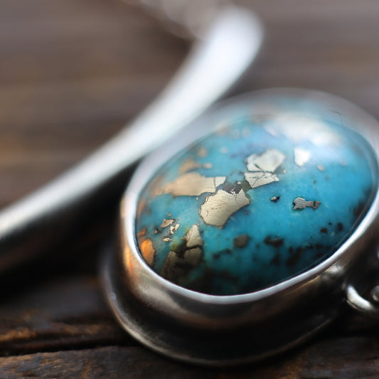 Sterling Silver Persian Turquoise + Pyrite Necklace