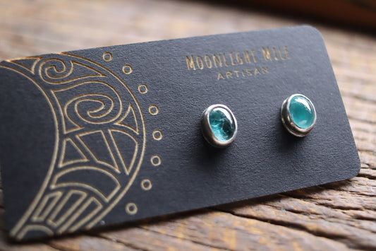 Natural Sea Aqua Kyanite earring studs 6x8mm B